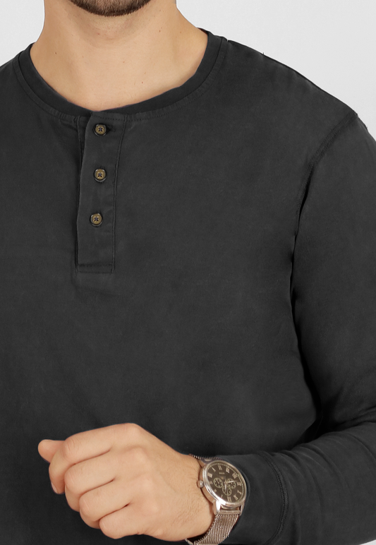 Polera Henley, manga larga, algodón